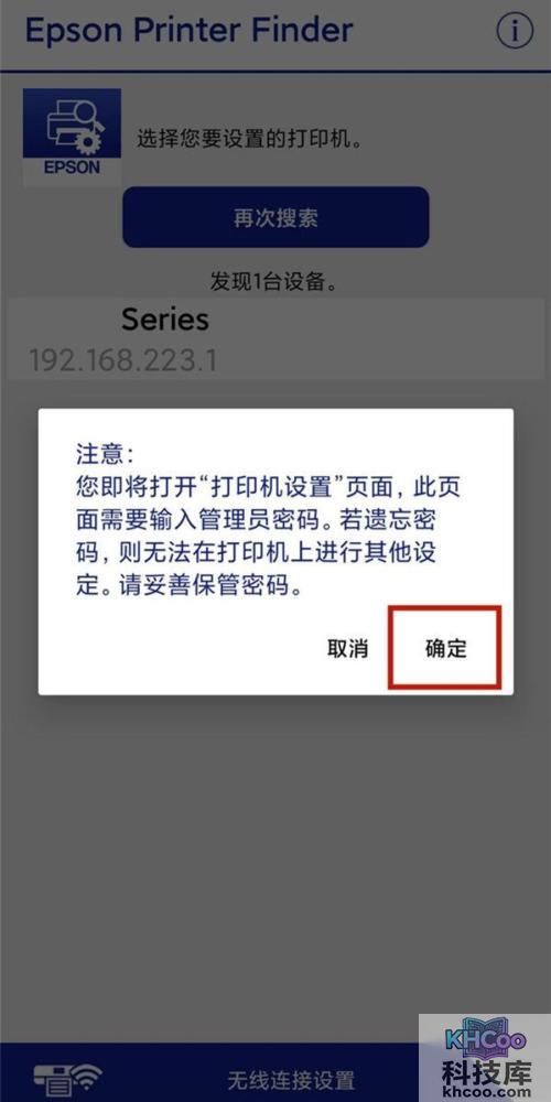 2、然后打开EPSON printer finder,自动连接打印机后,点击确定。