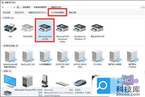 3.点击我们连接的打印机,接着选择上放的打印服务器属性;