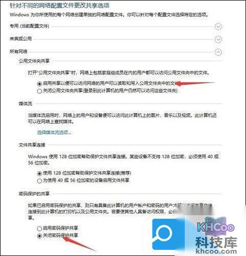15.启用公用文件夹共享---关闭密码保护共享 ;