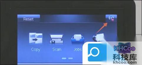 1、首先我们打开惠普打印机的操作面板,在右上角可以看到一个连接标志。