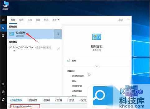 2、在电脑上按下win+s组合键,在搜索栏输入控制面板并点击进入;