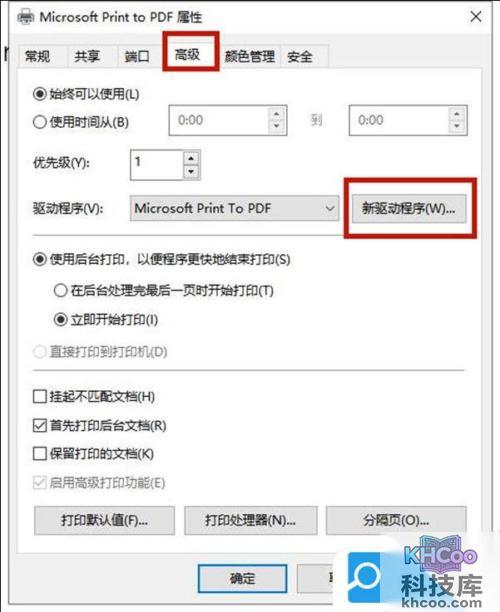 5. 点击高级,点击新驱动程序;