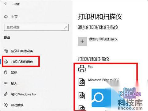 1. 在电脑设置页面点击设备>打印机和扫描仪,选择需要设置的打印机名称;