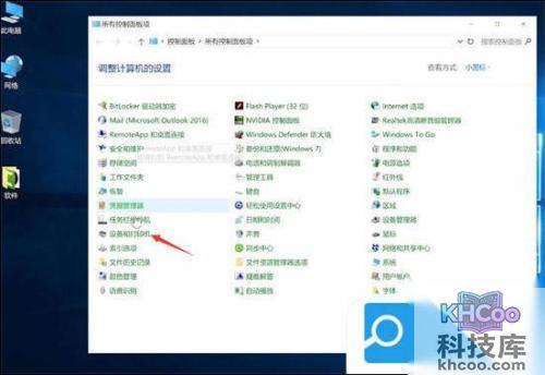 3. 在查看方式小图标模式下点击设备和打印机;