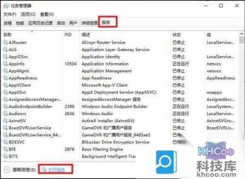 1、切换到“服务”,点击“打开服务”。