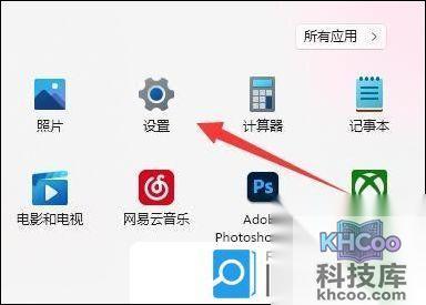 2、在打开的开始菜单中,找到并点击所有应用下的设置;