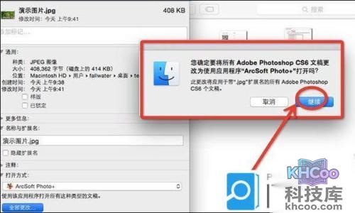 5.在弹框中选择“继续”,确认该类型的文件都更改为此程打开,如下图: