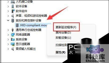 6. 进入后,展开其中的鼠标设备,选择“更新驱动程序”再根据提示进行更新即可解决。