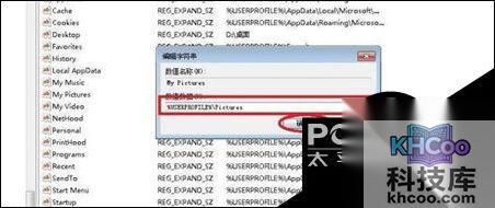 3. 然后找到右侧中的“My picture”双击打开,在打开的窗口中,将“数值数据”改为“%USERPROFILE%Pictures”,最后点击确定保存并将电脑重启即可。