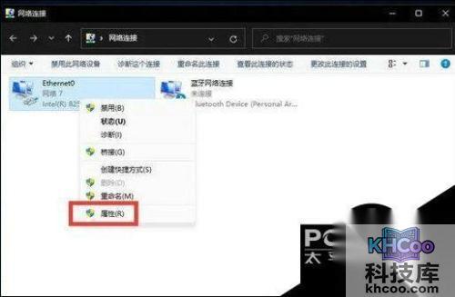 完成后,选择已连接的网卡设备,右键选择属性。