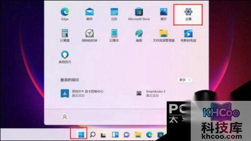 1. 在电脑 任务栏 中点击开始菜单,并选择其中的“设置”进入。