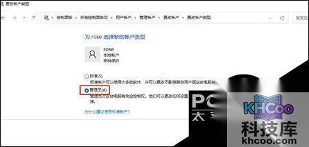 4. 选择管理员,然后点击更改账户类型就可以了。