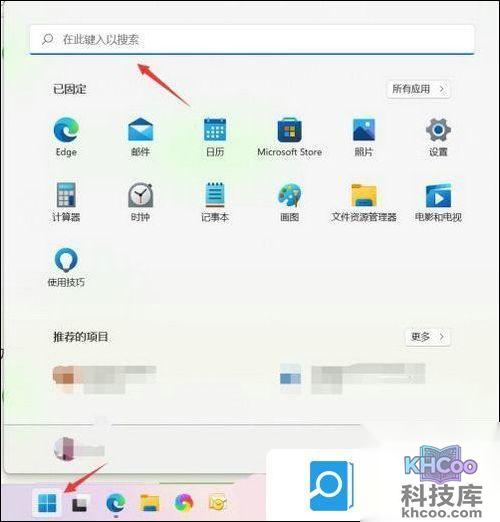 1、按Win键,或点击任务栏上的开始图标,然后点击最顶部的搜索框。