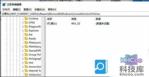 2、然后依次打开“HKEY_CURRENT_USERSoftwareMicrosoftWindowsCurrentVersionPolicies”文件。