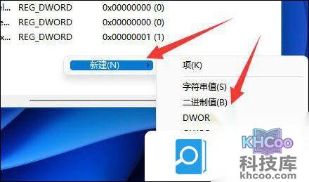 6、进入后在右边空白处“新建”一个“DWORD值”