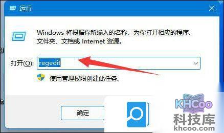 4、在运行中输入“regedit”并回车打开注册表