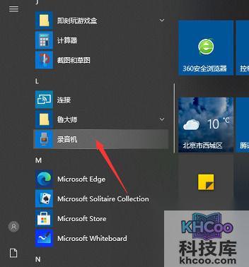 点击屏幕左下方" 开始菜单 "按钮,导航至" 所有应用 "列表,找到并启用录音机。