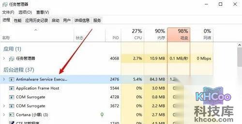 1、首先我们先来看一下任务管理器中antimalware service executable进程,直接占用了我们大量的内存。