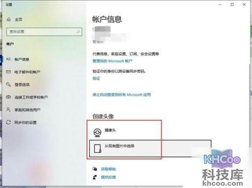 2、点击以后会出现账户选项,我们选择其中的更改账户设置然后再次选择创建您的头像。