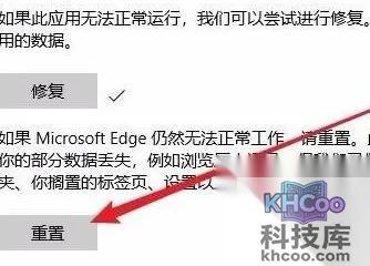 5、此时,将会展开Microsoft Edge浏览器的配置页面,请点击页面内的“ 修复 ”按钮。