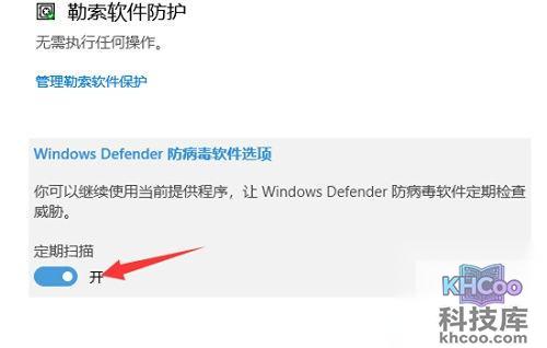 5、最后我们返回界面,将界面拉到底,我们找到windows Defenfer防病毒软件选项,将下面的定期扫描给点成关闭即可。