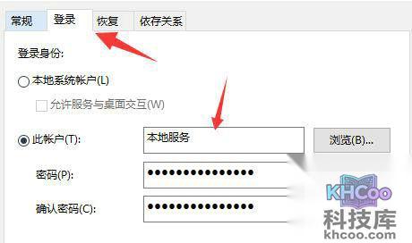 4、进入“登录”,在下方登录本地服务。登录完成后点击“确定”