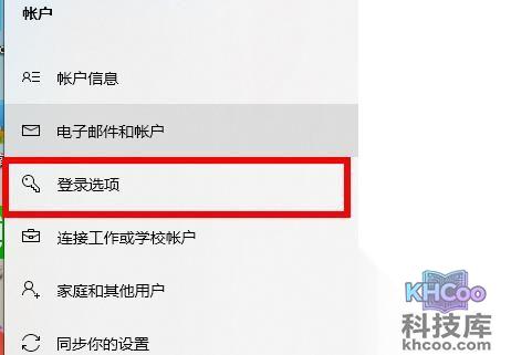3、在左侧菜单栏中,请定位到" 登录选项 "。