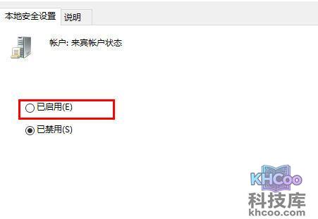 4、在打开的“ 账户:来宾账户状态 属性 ”窗口中,请您勾选“ 已启用 ”选项,并点击“ 确定 ”按钮。如此操作,便可成功开启Guest来宾账户的服务。