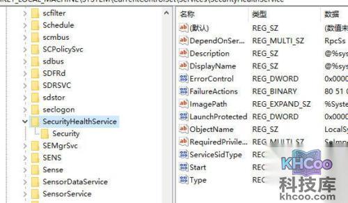 3、进入“HKEY_LOCAL_MACHINE\SYSTEM\CurrentControlSet\Services\SecurityHealthService”位置。