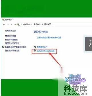 2、在控制面板窗口中,展开“ 用户账户 ”部分,找到并点击“更改用户账户控制设置”选项。