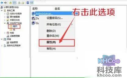 6、在右侧找到并右击“ Administrator ”项,选择属性。