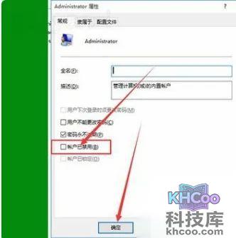 7、在新弹出的窗口中,取消“ 账户已禁用 ”选项前的勾选,并点击确定完成操作。