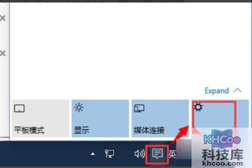 1、首先,在任务栏右下方的 通知 图标处点击一次,随后在弹出的通知栏中选择并进入 全部设置 选项。