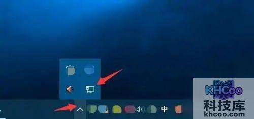 5、再次回到电脑桌面,您将发现底部右侧的任务栏中,网络图标已不再显示,而是隐藏在向上箭头内部。