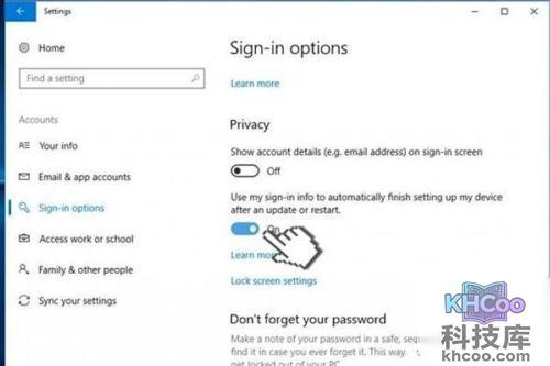 3、然后我们打开设置窗口选择账户,在打开登录选项并点击左侧栏目中的隐私。