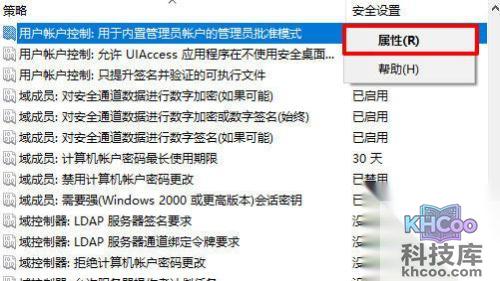 3、找到“用户账户控制:用于内置管理员账户的管理员批准模式”,右键点击属性