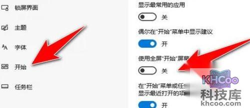 3、找到开始这里,然后把全屏这里关掉,然后重启电脑就可以了。