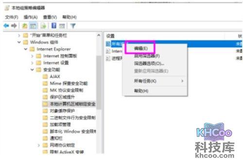 4、全部打开以后点击Internet Explorer,其中的安全功能中的本地计算机区域锁定安全。