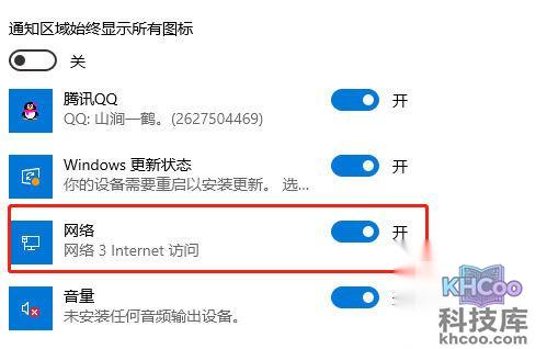 3、在这里看看你的网络图标是否有开启