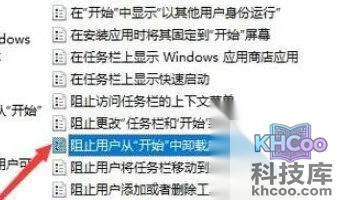 4、在右侧窗口中,您可以找到“ 阻止用户从开始中卸载应用程序 ”选项,双击此项便可打开其属性设置窗口。