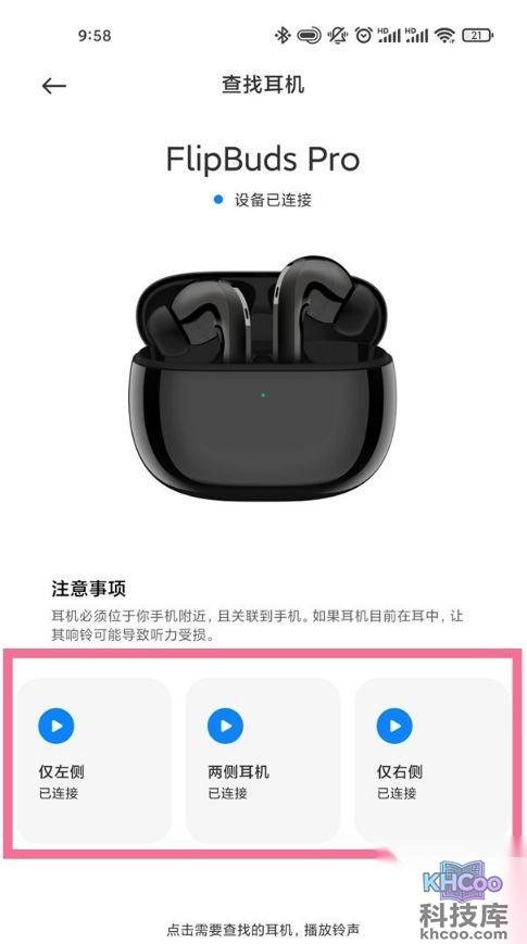 3、点击【查找耳机】,点击需要查找的耳机,耳机将播放 铃声 帮助用户查找。