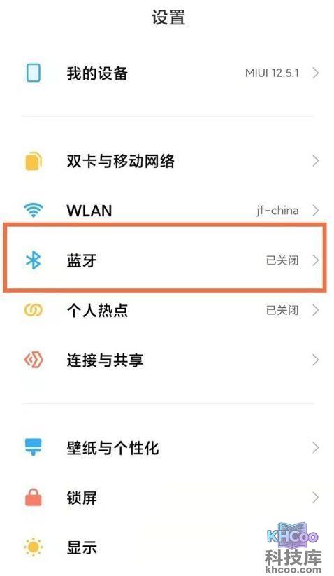 2、打开小米手机设置,点击【蓝牙】,将【开启蓝牙】的开关开启。