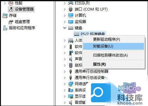 3. 带有ps/2的键盘就是我们目前正在使用的笔记本键盘,右键点击这个选项,选择卸载设备;