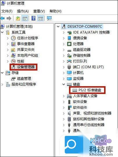 2. 选择设备管理器,在设备管理器页面左键点击键盘,会出现下拉选项;