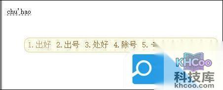 2. 将文字输入切换到中文输入法,输入chuhao,然后选择即可。