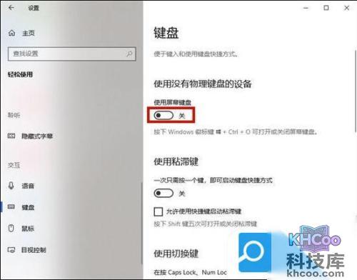 2. 找到“触摸键盘”将其打开;