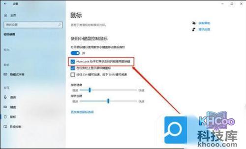 3. 点击“鼠标”,取消“Num Lock处于打开状态时只能使用鼠标键”对号。