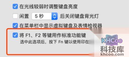 3、点击键盘之后进入该界面,点击勾选开启【将F1、F2等键用作标准动能键】,键盘灯亮度的增减开闭即为【fn+f5】或者【fn+f6】组合键。