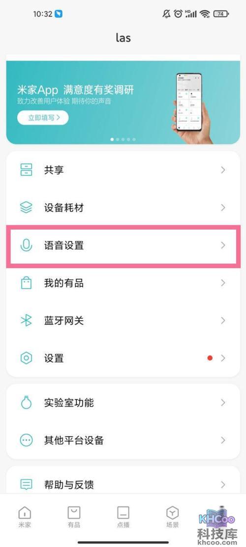 2、在米家“我的”界面点击【语音设置】。