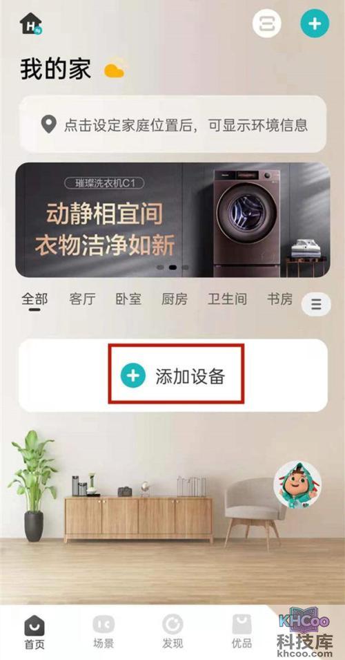 1、打开海信爱家app,点击添加设备。
